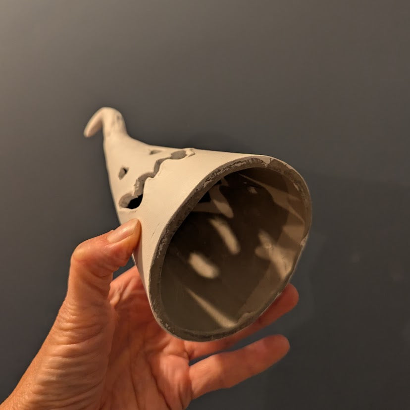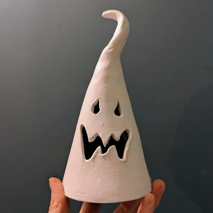 Starting with a simple clay slab, you'll form the cone and then bring your ghost to life by cutting out a face. Keep it sweet and simple or get creative with a more intricate Jack-O'-Lantern-inspired design. The choice is yours!